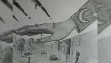 A wheelchair-bound teenager from Afghanistan has drawn a sketch to mark last July’s defeated coup attempt in Turkey using just her mouth.