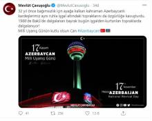 Turkish Foreign Minister Mevlut Cavusoglu has congratulated the people of Azerbaijan on the occasion of 17 November - the National Revival Day.