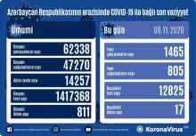 The number of COVID-19 cases in Azerbaijan over the past day has risen by 1465, reaching 62,338, the Task Force under the Cabinet of Ministers told AZERTAC.