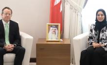 Manama, Oct. 5 (BNA): Speaker of the Council of Representatives, Fawzia bint Abdulla Zainal, received here recently the US Ambassador to Bahrain, Justin Siberell.
