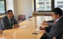 The Minister of Foreign Affairs, Shaikh Khalid bin Ahmed bin Mohammed Al Khalifa, met the Deputy Prime Minister and Minister of Foreign Affairs of Turkmenistan, Rashid Meredov, on the sidelines of