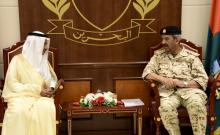 Manama, July 7 (BNA): The BDF Commander-in-Chief Field Marshal Shaikh Khalifa bin Ahmed Al Khalifa received Ambassador of Saudi Arabia to Bahrain Dr. Abdullah bin Abdul-Malik Al Shaikh.