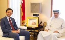 Manama, May 2 (BNA): Information Minister Ali bin Mohammed Al Romaihi, the Board of Trustees Chairman of Bahrain Institute for Political Development, received today Italian Ambassador to Bahrain Do