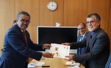 Geneva, Mar. 18 (BNA): Shaikh Hussam bin Isa Al Khalifa, President of HRH Prince Khalifa bin Salman Al Khalifa Award for Sustainable Development, today met WHO Director-General Dr.