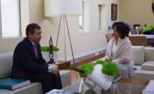 Manama, Mar. 11 (BNA): Speaker of the Council of Representatives, Fawzia bint Abdullah Zainal, today received Information Affairs Minister Ali bin Mohammed Al Romaihi.