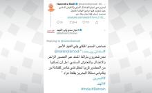 Manama, (BNA): His Royal Highness Prince Salman bin Hamad Al Khalifa, the Crown Prince, Deputy Supreme Commander and First Deputy Prime Minister responded to a tweet issued by India’s Prime Minist