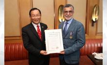 New York, Sept. 30 (BNA): Shaikh Hussam bin Isa Al Khalifa met in New York today with President of the Federation of World Peace and Love (FOWPAL) Dr.