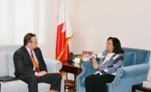 Manama, June 13 (BNA): Health Minister Faeqa bint Saeed Al Saleh received the American Ambassador to Bahrain Justin Hicks Siberell.