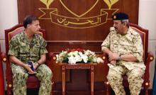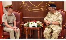 Manama, May 2 (BNA): Commander-in-Chief of Bahrain Defence Force (BDF), Field Marshal Shaikh Khalifa bin Ahmed Al Khalifa, received outgoing British Military Attaché Tom Ridgway accompanied with th