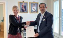 Manama, Oct. 19 (BNA): Dr. Ramzan bin Abdulla Al Noaimi, Minister of Information, received here today, Eric Giraud-Telme, French Ambassador to Bahrain.