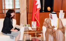 Manama, Nov. 14 (BNA): Deputy Prime Minister His Highness Shaikh Mohammed bin Mubarak Al Khalifa today received outgoing Ambassador of Turkey to Bahrain, Hatun Demirer.