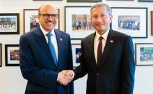 New York, Sept. 22 (BNA): Minister of Foreign Affairs, Dr. Abdullatif bin Rashid Al-Zayani, met in New York City today the Minister of External Affairs of the Republic of India, Dr.