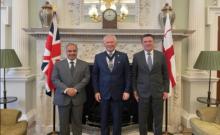 London, Sept. 13 (BNA): Shaikh Fawaz bin Mohammed Al Khalifa, the Ambassador of Bahrain to the United Kingdom, met Nicholas Lyons, the Lord Mayor of London.
