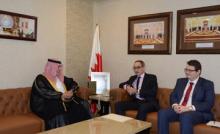 Manama, June 7 (BNA): Minister of Foreign Affairs, Shaikh Khalid bin Ahmed bin Mohammed Al Khalifa, received today, Ambassador of the Kingdom of Saudi Arabia to the Kingdom of Bahrain, Dr.