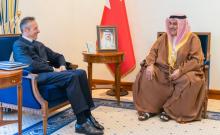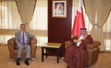Manama, Apr. 4 (BNA): Advisor to His Majesty the King for Diplomatic Affairs Shaikh Khalid bin Ahmed bin Mohammed Al Khalifa received French Ambassador to Bahrain, Jérôme Cauchard.