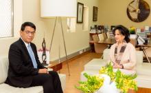Manama, Apr. 4 (BNA): Minister of Justice, Islamic Affairs and Endowments Shaikh Khalid bin Ali Al Khalifa received the newly appointed US Ambassador to Bahrain, Steven Bondy.