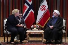 TEHRAN, Sep. 26 (MNA) – Iranian President Hassan Rouhani and Norwegian Prime Minister Erna Solberg met Tue. evening in New York and conferred on bilateral, regional and international issues.