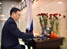 Ulaanbaatar /MONTSAME/ Prime Minister of Mongolia J.Erdenebat Tuesday visited the Russian Embassy in Ulaanbaatar to sign the book of condolences over the crash of Tu-154.