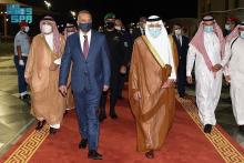 Riyadh, March 31, 2021, SPA -- At the invitation of the Custodian of the Two Holy Mosques King Salman bin Abdulaziz Al Saud, Prime Minister of the Republic of Iraq Mustafa Al-Kadhimi arrived in Riy