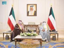 Kuwait, October 4, 2021, SPA -- Sheikh Mishal Al-Ahmad Al-Jaber Al-Sabah, Deputy Emir and Crown Prince of the State of Kuwait, received today at Bayan Palace Prince Turki bin Mohammed bin Fahd bin