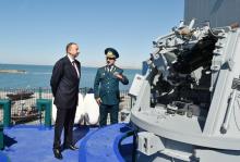 Azerbaijani president reviews new border guard ship of State Border Service
