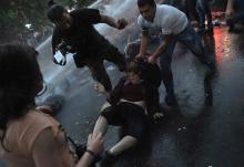 The police are trying to remove the garbage cans, used by protesters for six days as barricades, News-Armenia website reported.
