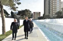 President of the Republic of Azerbaijan Ilham Aliyev has reviewed the newly-built fountain and waterfall complex in Khatai district, Baku.