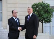 Azerbaijani President Ilham Aliyev met with French President Francois Hollande at the Elysee Palace in Paris Oct. 27.