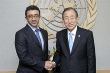 New York, Sept 23, 2012 (WAM) - Sheikh Abdullah Bin Zayed Al Nahyan, UAE Foreign Minister, met on Saturday UN Secretary General Ban Ki-moon at the UN headquarters in New York where they exchanged v