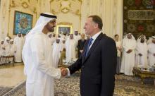 ABU DHABI, 28th April 2015 (WAM)--- His Highness Sheikh Mohamed bin Zayed Al Nahyan, Crown Prince of Abu Dhabi and Deputy Supreme Commander of the UAE Armed Forces, on Sunday received John Key, the