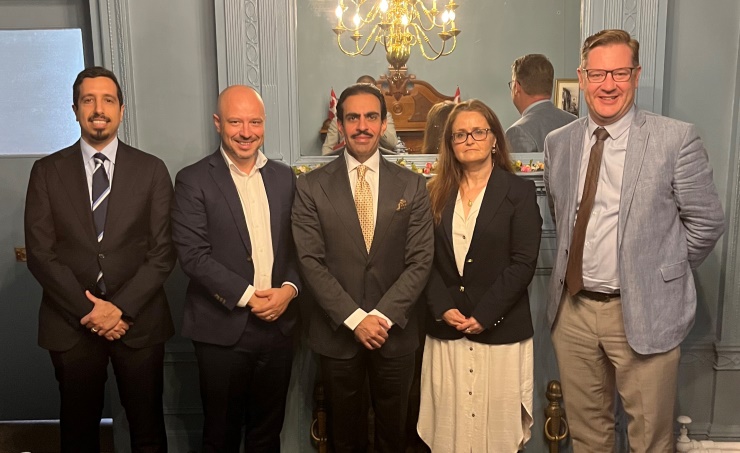 Ottawa, June 25 (BNA): Washington-resident Bahraini Ambassador to Canada, Shaikh Abdulla bin Rashid Al Khalifa, participated in a meeting with Balkan Devlin, Director of the Transatlantic Programme and Senior Fellow at the Macdonald-Laurier Institute, as part of his official visit to Canada.