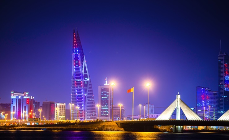 Bahrain’s landmarks lit up in red and blue in celebration of HM King Charles III
