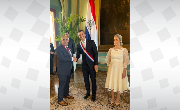 Asunción, Aug.16 (BNA): Bahrain’s Ambassador to Brazil Bader Abbas Al Hulaibi conveyed greetings from His Majesty King Hamad bin Isa Al Khalifa and His Royal Highness Prince Salman bin Hamad Al Khalifa, the Crown Prince and Prime Minister, to President Santiago Peña of Paraguay.