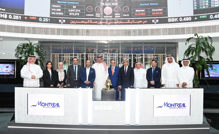 A ringing bell ceremony was held to mark the commencement of listing of ‘MONTREALBH’ shares in the presence of Abdulkarim Ahmed Bucheery, Chairman of BHB, CEO of BHB Shaikh Khalifa bin Ebrahim Al Khalifa, Montreal Motors Founder & Vice Chairman Ebrahim Al Shaikh, executive management of Bahrain Bourse, and senior representatives from the Central Bank of Bahrain.