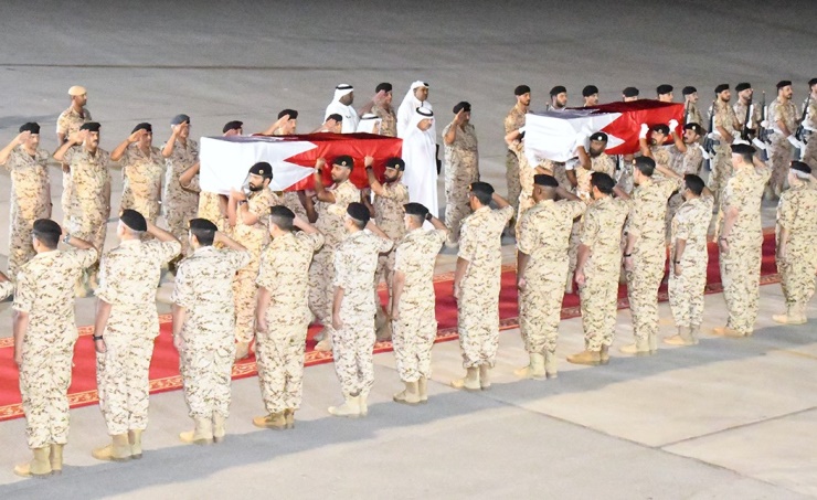 The bodies of the fallen servicemen arrived on Monday at the Isa Air Base on board a Royal Bahraini Air Force military aircraft.