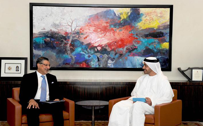 During the meeting, Sheikh Abdullah and Amin reviewed the latest developments regarding IRENA's mission for deployment of renewable energy uses globally and explored prospects of joint cooperation in various fields in order to enhance capacity of the Abu Dhabi-based agency.