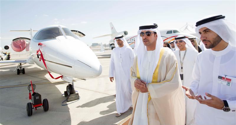 Sheikh Hazza toured the venue of the event which includes nearly 70,000 square meters of exhibition space, showcasing over 70 aircraft and bringing together nearly 100 distributors offering the latest in general aviation technology and innovation products and services.