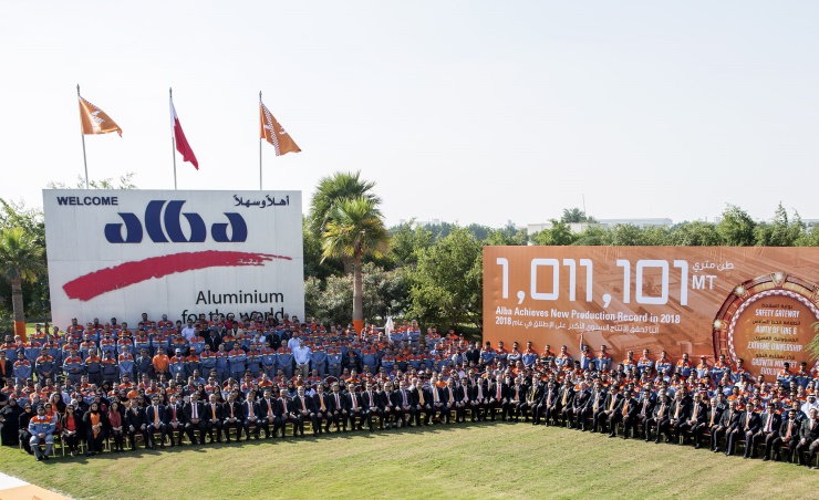 Manama, (BNA): Aluminium Bahrain B.S.C. (Alba), soon to be the largest smelter in the world, achieved a breakthrough record by exceeding its 2018 Production Target of 1,000,000 metric tonnes per annum (mtpa) to mark 1,011,101 mtpa. 2018 production volume of 1,011,101 mtpa is the highest-ever achieved in Alba’s history - up by 3% Year-over-Year versus 981,016 mtpa in 2017.