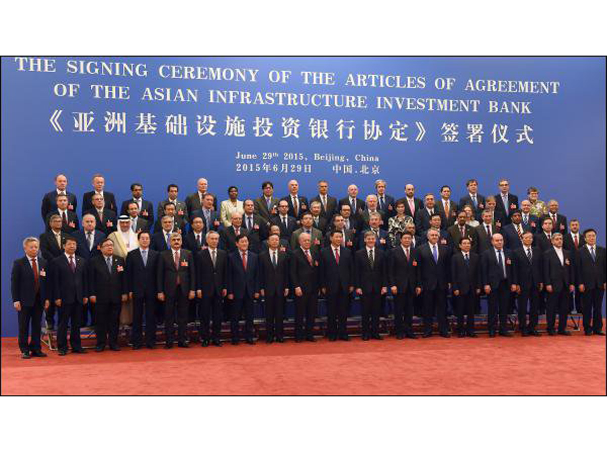 Representatives from 57 Prospective Founding Members (PFMs) of the Asian Infrastructure Investment Bank (AIIB), including Azerbaijan, gathered on June 29 in Beijing for a Signing Ceremony of the Bank's Articles of Agreement at the Great Hall of the People.
