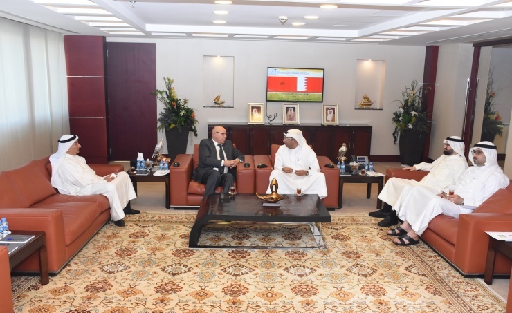 Manama, Oct. 7 (BNA): Chairman of the Bahrain Chamber of Commerce and Industry (BCCI), Sameer Nass alongside the First Vice-Chairman Khalid Najibi, board member Ahmed Al Saloom, and Chief Executive Officer Shaker Al Shater received at Bait Al Tijjar recently the Moroccan Ambassador to Bahrain,  Ahmed Rachid Khattabi. They hailed the relations between the Kingdom of Bahrain and the Kingdom of Morocco under their leaderships. They also discussed the prospect of business in light of the major development projects taking place in both countries.  The meeting also discussed cementing cooperation between the Bahrain Chamber of Commerce and Industry and Morocco’s General Confederation of Enterprises in encouraging liaison between both business communities and stimulating trade and investments.