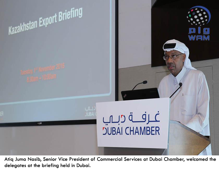 DUBAI, 2nd November, 2016 (WAM) -- The Dubai Chamber of Commerce and Industry, DCCI, in co-operation with Kazakhstan’s National Agency for Export and Investment (KAZNEX INVEST) and the Embassy of the Republic of Kazakhstan to the UAE, held the Kazakhstan Export briefing here yesterday in a bid to explore potential for improving ties between Dubai and Kazakhstan across several sectors.