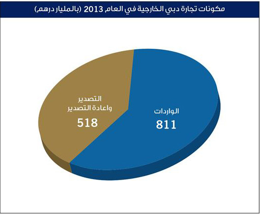 Dubai (WAM): With a new peak for non-oil foreign trade in 2013, Dubai's rising growth in foreign trade culminates with a volume of Dh 1.329 trillion, achieving an Dh 94 billion increase from the 2012 value which totalled Dh 1.235 trillion.