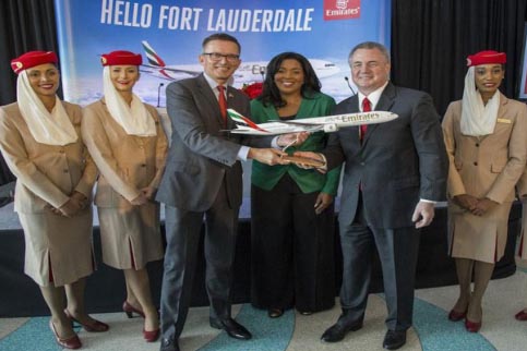 "Our new daily service to Fort Lauderdale will significantly enhance South Florida’s commercial and cultural connections. Emirates is proud to connect people across the globe and today’s inaugural flight illustrates the reach of our global network and the potential tourism and trade opportunities of our daily service," said Hubert Frach, Emirates Divisional Senior Vice President, Commercial Operations, West. "The launch of this historic route will allow us to offer Emirates’ unique product and award-winning service to passengers flying to and from South Florida to our home in Dubai and onwards to more than 150 global destinations."