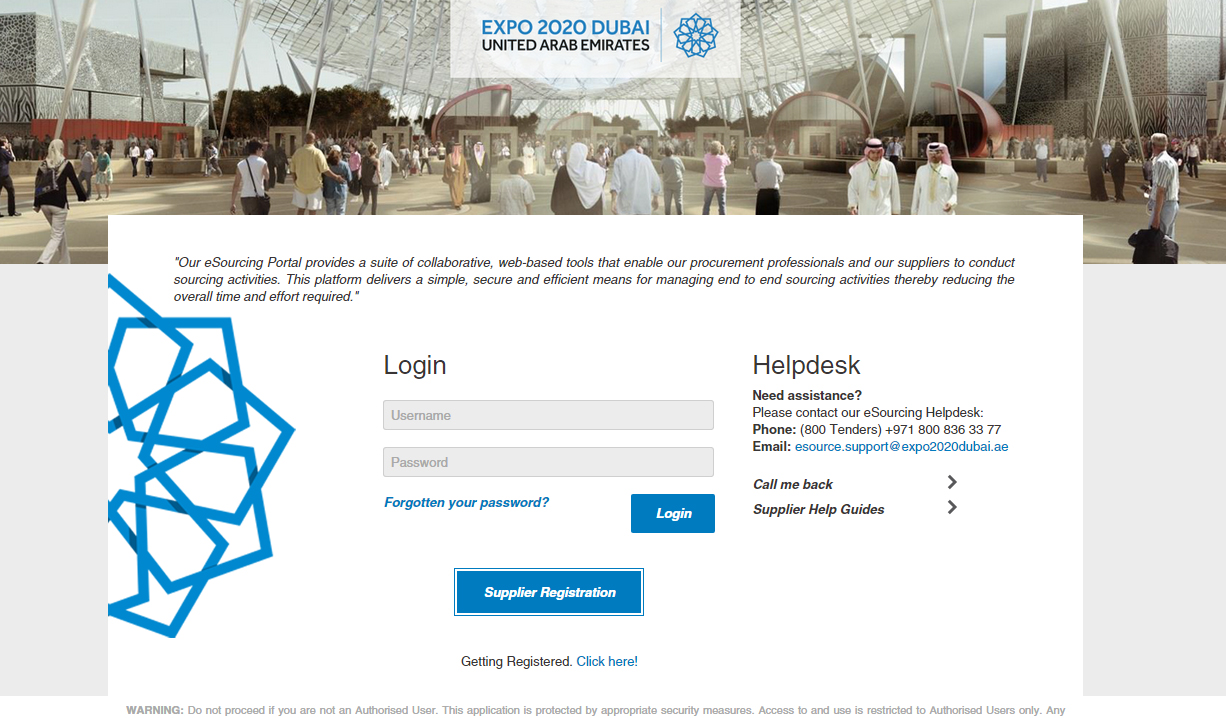 Expo 2020 Dubai has announced the launch of the Expo 2020 eSourcing portal, an online procurement system that will link all Expo related procurement operations and enable rapid deployment of tender opportunities openly and transparently to the global business company. All interested businesses are encouraged to register with the newly open procurement portal at https://esource.expo2020dubai.ae. With the support of strategic sourcing company Tejari, the new portal offers a world class best practice procurement system to vendors interested in participating in the 2020 World Expo. eSourcing will provide solid governance practices that promise heightened efficiencies, and produce competitive and quality services and products in the delivery of the event. The implementation will enhance Expo 2020 ability to implement critical infrastructure projects more quickly and effectively as well as open the door to local, regional and global SMEs, entrepreneurs and businesses. Sheikh Ahmed bin Saeed Al Maktoum, President of the Department of Civil Aviation, Chairman and Chief Executive of Emirates Airlines and Group and Chairman of the Expo 2020 Dubai Higher Committee said, "the vendor management process for a mega event, such Expo, is a complex undertaking. The eSourcing system will ensure a fair, transparent and accessible engagement with our vendor partners. Developing a streamlined eSourcing and tendering system that consolidates all Expo procurement activity, across all Expo buying entities, in a seamless, efficient and user friendly manner is critical to the successful delivery of Expo 2020. The eSourcing portal ensures businesses, of all sizes and capacities, will have equal opportunity to engage and be a part of this historical event." Hussain Nasser Lootah, Director General of Dubai Municipality, member of the Expo 2020 Dubai Higher Committee and Chairman of the Expo 2020 Tender and Procurement Subcommittee, added, "every facet of procurement, tendering and vendor engagement is a priority for Expo 2020. From supplier pre-qualification, evaluation and selection cycles, to embedding reliable structures, cost and performance monitoring, quality assurances, auditing and the elimination of redundancies – a solid and comprehensive sourcing system will assist Expo in achieving operational excellence and stimulate competition." The Expo 2020 eSourcing portal enables users to interactively access and review open and awarded tenders. The portal ensures that all tenders and timelines for tenders, issued by Expo 2020, are posted onto a single site. Bidders will be able to view and download bid documents as well as all procurement procedures, changes and instructions. Potential bidders only need to register their business online at https://esource.expo2020dubai.ae Reem Al Hashimy, UAE Minister of State, Director General – Bureau Dubai Expo 2020 and Board Representative of Expo 2020 Dubai Higher Committee stated, "the introduction of the Expo 2020 eSourcing system is another milestone in our journey to deliver inclusive opportunities to the community where they can connect, grow and invest in the future of Dubai. We are committed to promoting and driving excellence in the preparation of Expo 2020 and this portal will assist us in identifying and involving our global business community, but more importantly, drive best practices and professionalism throughout our journey to 2020 and beyond. " To register on the Expo 2020 Dubai eSourcing portal, go to https://esource.expo2020dubai.ae or for more information about the Expo 2020 Dubai eSourcing portal contact esource.support@expo2020dubai.ae. – Emirates News Agency, WAM – http://www.wam.ae/en/news/emirates/1395279594267.html