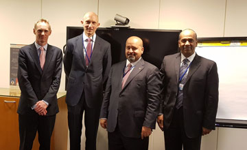 Washington, Oct. 13 (BNA): Shaikh Ahmed bin Mohammed Al Khalifa, the Minister of Finance, received Mr. Moritz Kramer, Chief Ratings Officer, Standard & Poor’s, and from Fitch Ratings Mr. Jan Friedrich, Head of MENA Ratings and Mr. Ed Parker, Head of EMEA Ratings. The Minister highlighted during the meeting the resilience and diversified nature of the national economy, and the keenness of the government to provide all necessary elements to enhance its competitiveness while exploring further promising economic sectors. The meeting came on the sidelines of the World Bank Group (WBG) and the International Monetary Fund (IMF) annual meetings in Washington, D.C.