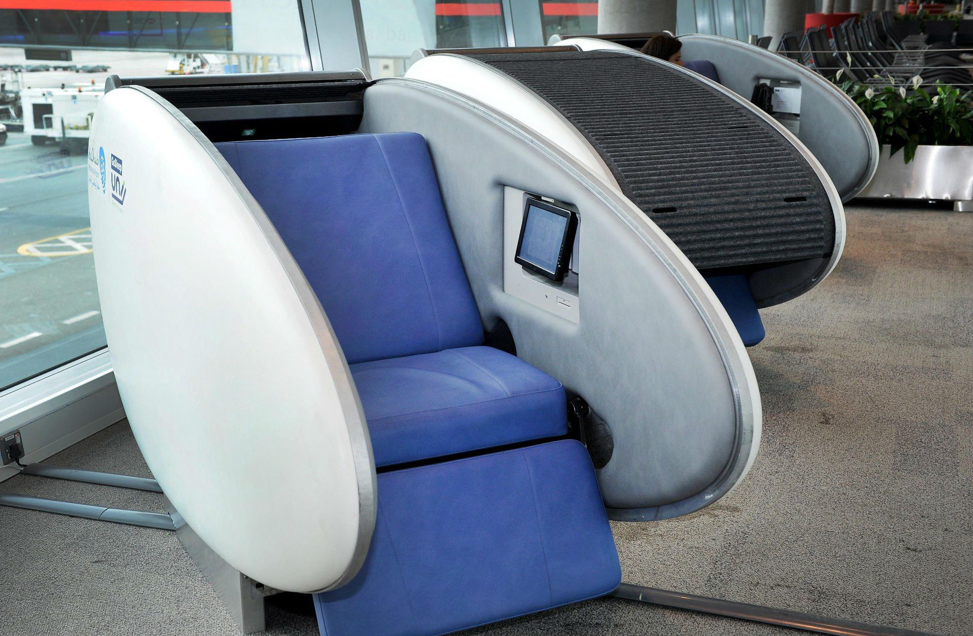 The stylish, Finnish designed sleeping pods are easy-to-operate and feature a partial or fully enclosed sliding shade that isolates the customer from noise, light and crowds. After an initial launch phase, the chairs will be upgraded to include Internet access, will include secure storage for luggage and other valuables, and will allow customers to charge their laptops, mobile telephones, and other electronic devices. Passengers will be able to use the chairs at a rate of Dh 45/hour using a credit card.