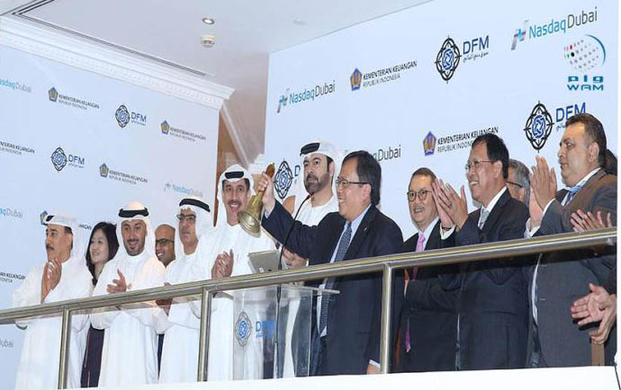 The bell-ringing ceremony took place in the presence of Al Gergawi, Essa Kazim, Governor of Dubai International Financial Centre (DIFC), Secretary General of DIEDC, and Chairman of Dubai Financial Market (DFM); executives from the Ministry of Finance of the Republic of Indonesia, Robert Pakpahan, Director General of Budget Financing and Risk Management and Suminto, Director of Islamic Financing; Abdul Wahed Al Fahim, Chairman of Nasdaq Dubai ; and Hamed Ali, Chief Executive of Nasdaq Dubai Bambang Brodjonegoro, the Indonesian Minister of Finance, said, "Indonesia is very proud to be able to actively participate in developing the Sukuk market. Not only in the domestic market, Indonesia also a frequent Sukuk issuer in the global market. Since our international debut in 2009, we have issued Global Sukuk valued at US$7.65 billion (Dh 28 billion). In 2012 we entered into a Trust Certificate Issuance Program which currently has four series outstanding valued at US$ 6 billion (Dh 22 billion)."