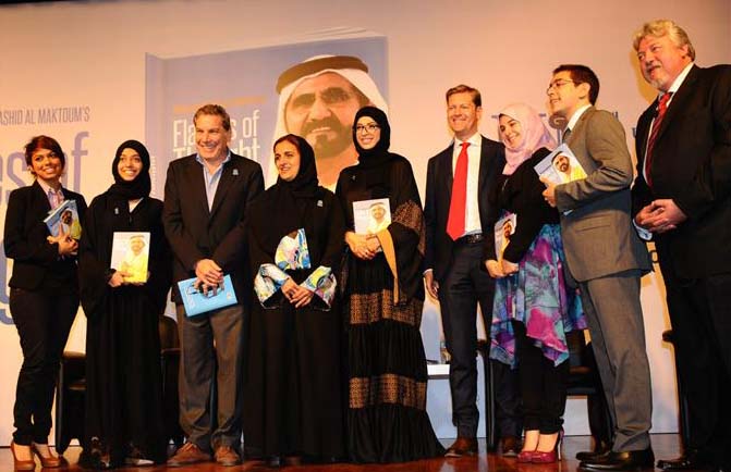 The event marked the publication in English of "Flashes of Thought", a diverse collection of personal reflections inspired by an audience dialogue session at the Government Summit in February 2013. In the book, Sheikh Mohammed explores the ideas, principles and experiences that have defined his leadership role in the development of Dubai and the U.A.E., as well as his personal journey as an Arab statesman on the world stage.