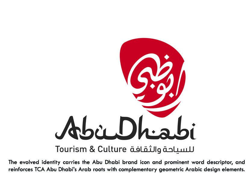 The evolved identity carries the Abu Dhabi brand icon and prominent word descriptor, and reinforces TCA Abu Dhabi’s Arab roots with complementary geometric Arabic design elements.