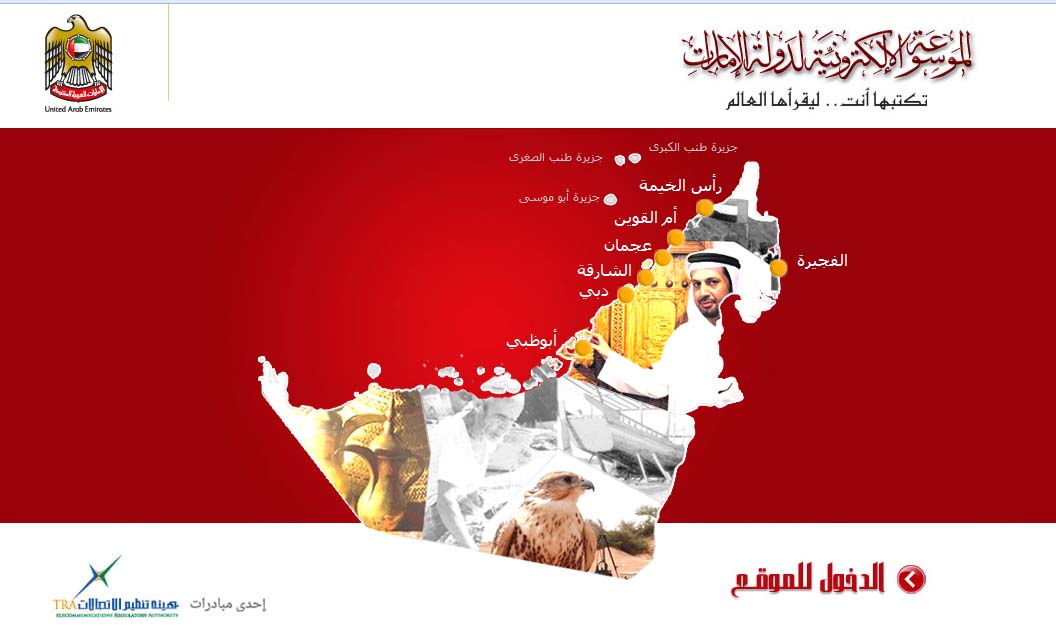 "We present this achievement to President His Highness Sheikh Khalifa bin Zayed Al Nahyan, to His Highness Sheikh Mohammed bin Rashid Al Maktoum, Vice President and Prime Minister of the UAE and Ruler of Dubai and to Their Highnesses Rulers of the Emirates," said Mohamad Nasser Al Ghanim, TRA Director General "We also dedicate it to all citizens, residents and lovers of the UAE. The Encyclopaedia is an embodiment of the principles of a knowledge-based society. It also enhances the principles of participation founded by the builder of our civilisation and the founder of our Union the late Sheikh Zayed bin Sultan Al Nahyan." The encyclopedia (UAEPedia.ae) is an initiative of the TRA's Information and eGovernment Sector. TRA oversees development and implementation of the Federal eGovernment Plan which includes the Encyclopedia.
